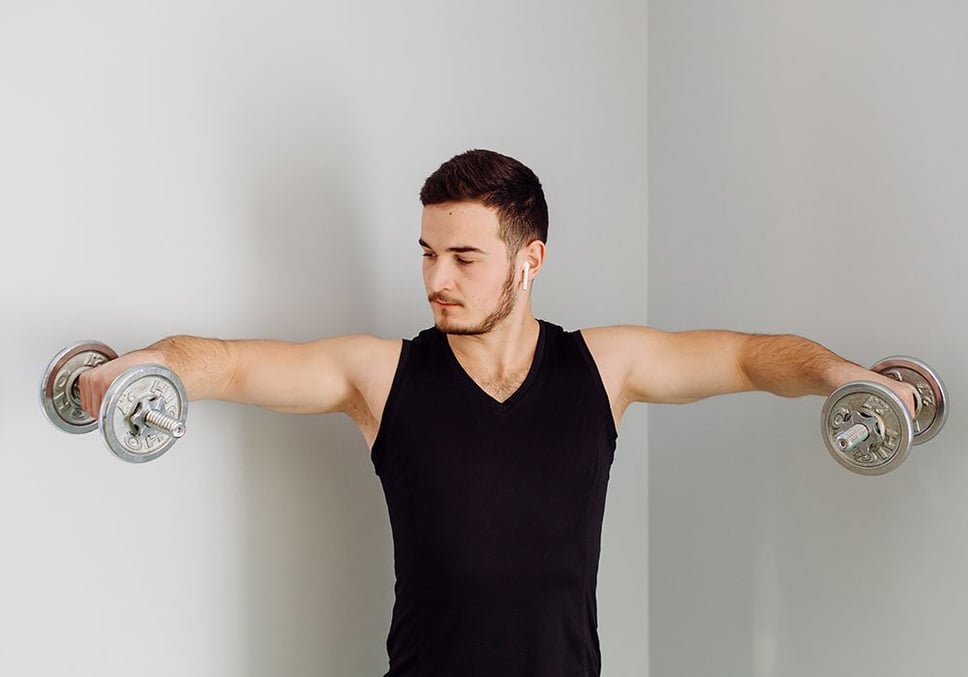 Відведення рук з гантелями в сторону найкраще виконувати після базових вправ на плечі (жим гантелей, армійський жим). Воно ідеально підходить для «добивання» середнього пучка дельтоподібних.
