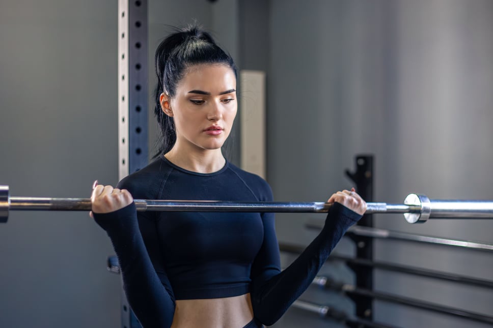 Зробіть 3–4 підходи по 10–12 повторень із помірною вагою. Для різноманітності можна працювати з ez-грифом, щоб знизити навантаження на суглоби та урізноманітнити тренування.